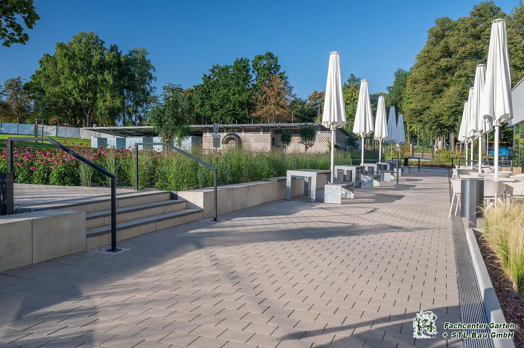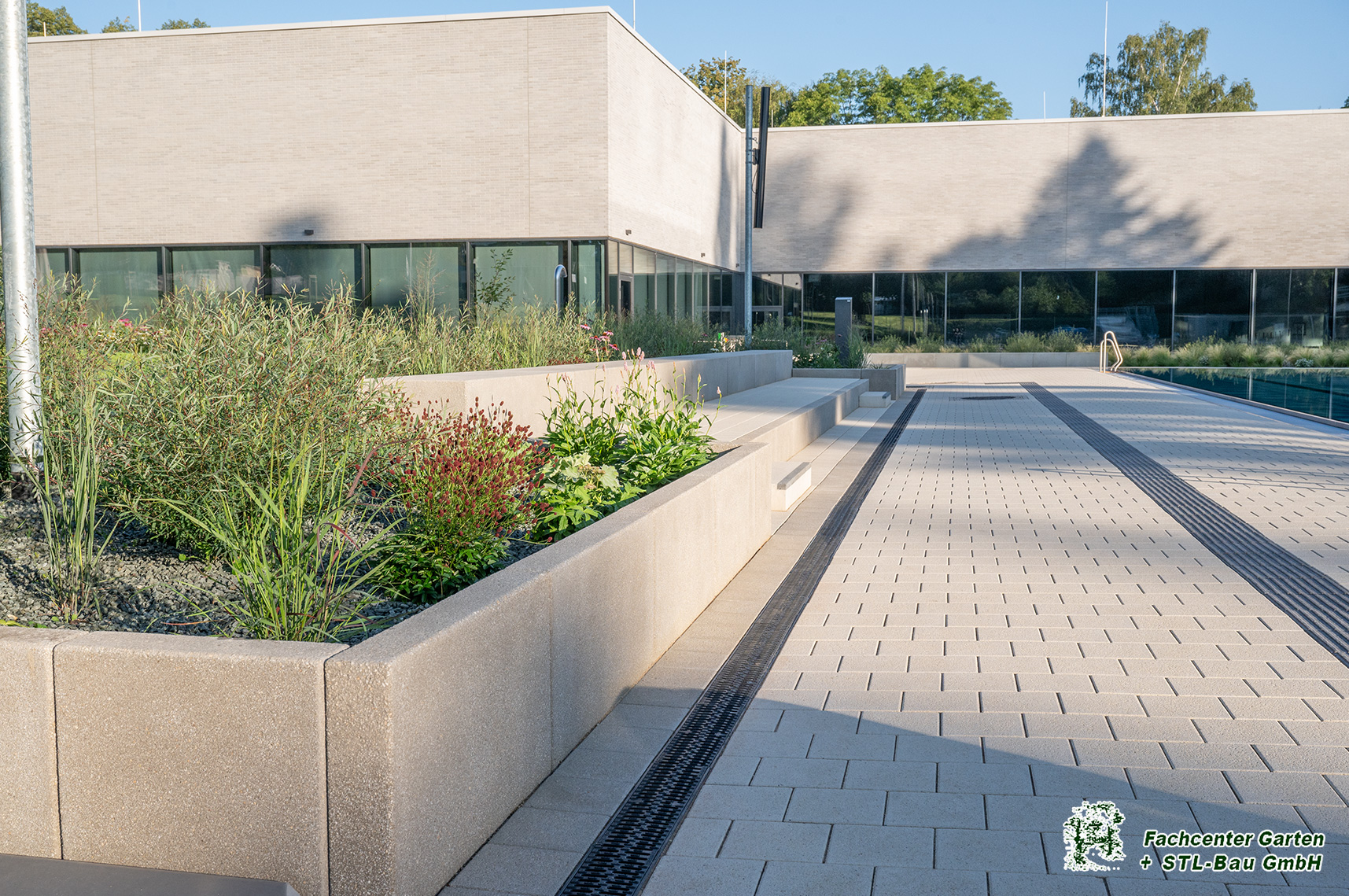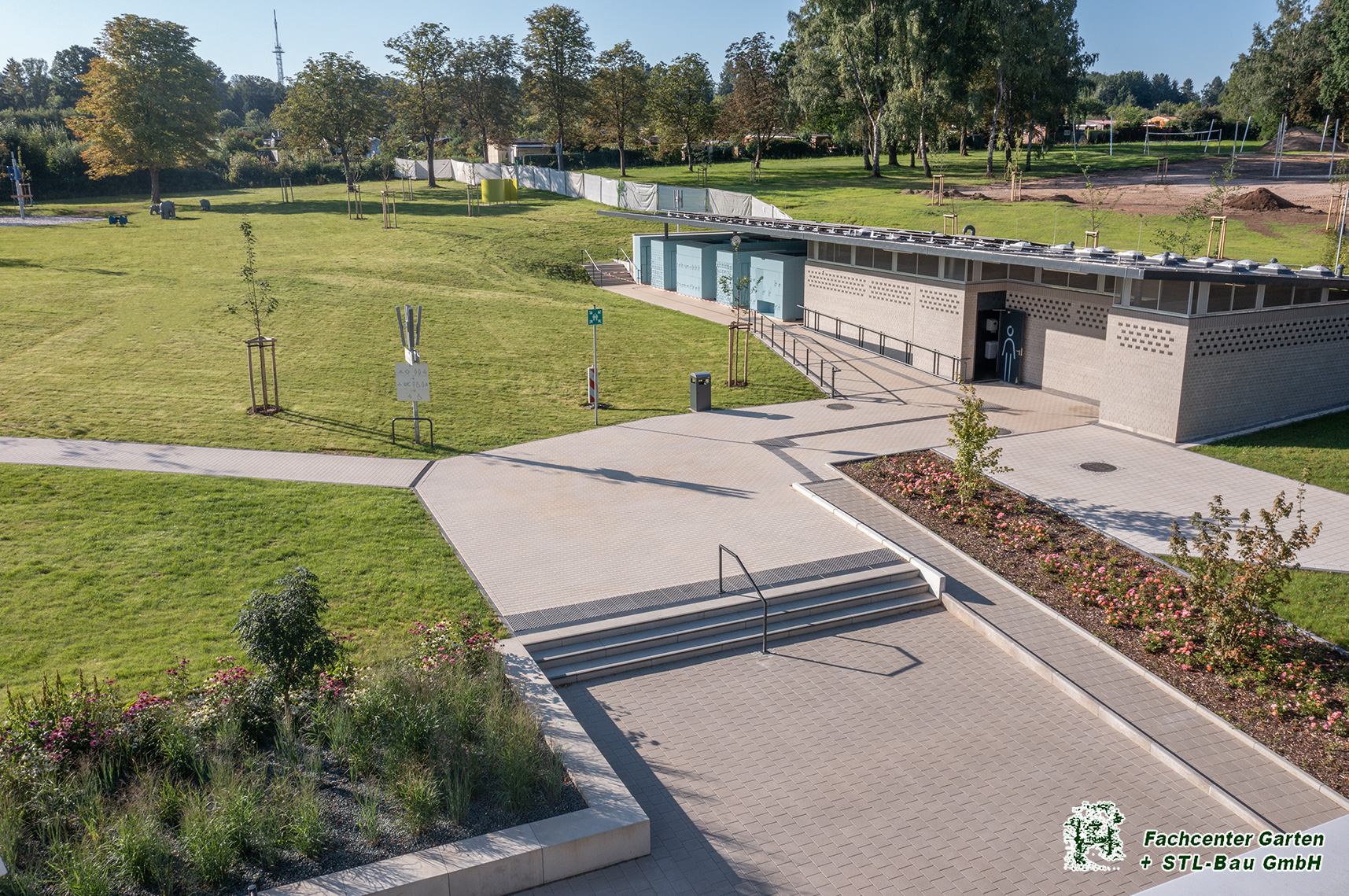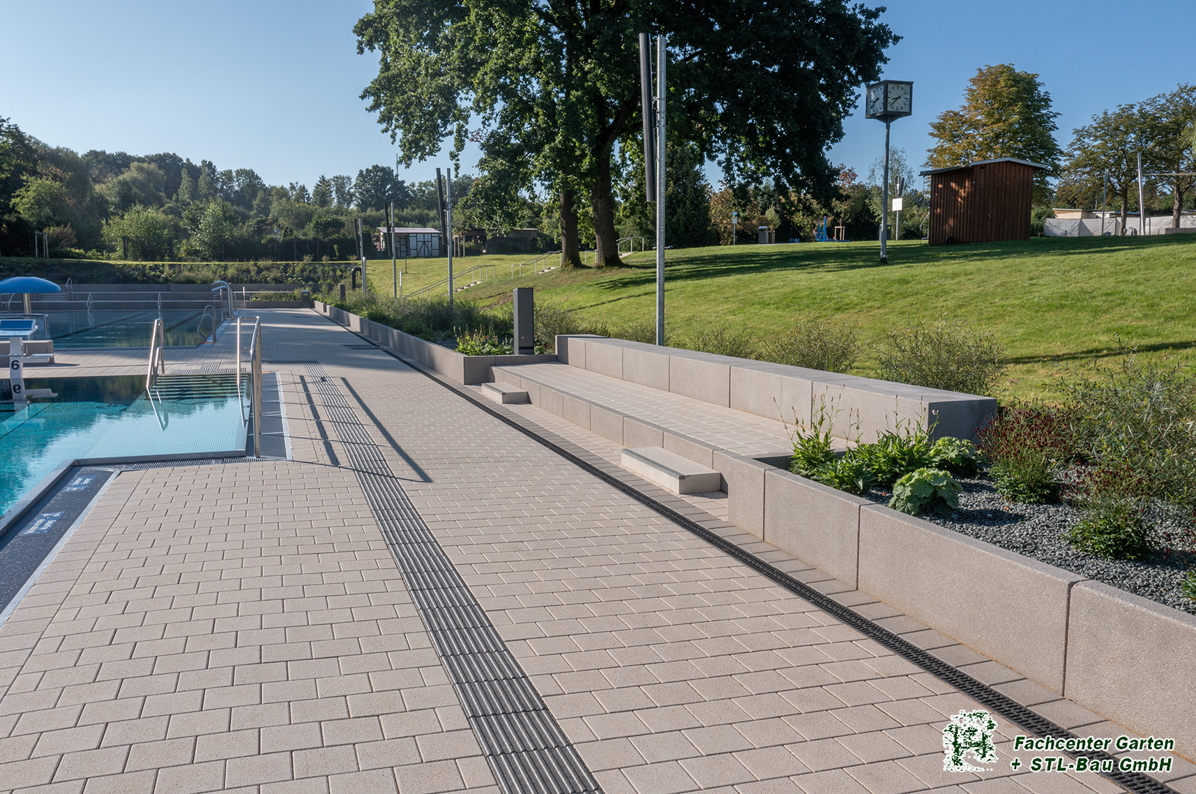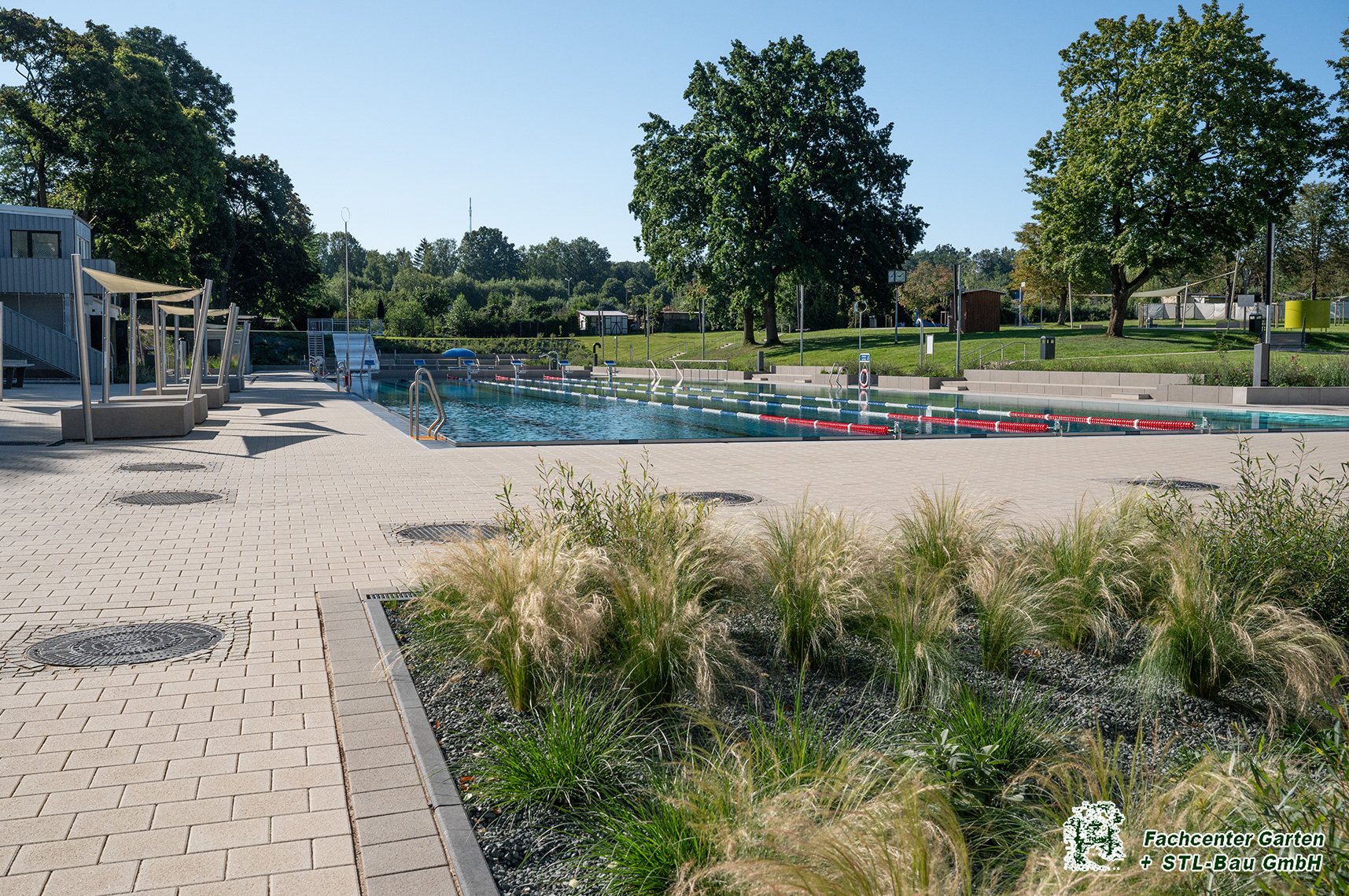 2025 Gestaltung der Außenanlage des Freibades Bernsdorf in Chemnitz. Baubeginn war von Augsut 2023 bis Mai 2025. Die Bauleistungen umfassten Kanalarbeiten, Entwässerungsarbeiten, Leitungsverlegung, Treppen- und Rampenanlagen, Pflasterarbeiten und Plattenverlegung, Sitzelemente, Stützmauern, Spielplatzfläche mit Spielgeräten, Beachvolleyballanlagen, Bepflanzung und Begrünung und der Neubau des Parkplatzes.